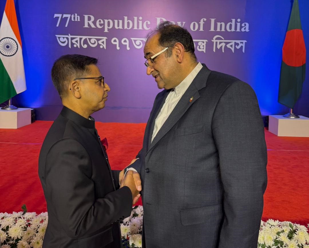 آقای دکتر رحیمی جهان آبادی سفیر محترم جمهوری اسلامی ایران در داکا مورخ 4 بهمن 1404 در مراسم روز ملی هند شرکت کرد. در این مراسم، سفیر کشورمان ضمن دیدار کوتاه با سفیر هند در بنگلاش و برخی دیگر از حاضرین در این مراسم در خصوص تحولات کشورمان به تبادل نظر پرداخت .