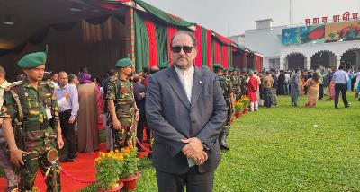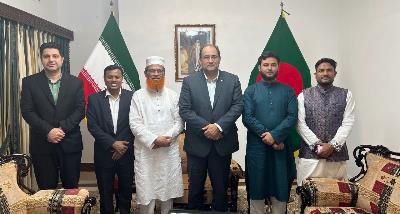 جناب آقای رحیمی جهان آبادی سفیر محترم جمهوری اسلامی ایران در داکا مورخ 26 اسفند 1404 در برنامه قرآنی تقدیر از قاریان و حافظان برتر قرآنی در بنگلادش حضور یافت. در این مراسم که وزیر امور دینی کشور  بنگلادش نیز حضور داشتندسفیر کشورمان ضمن حضور در مراسم و صرف افطاری ،با وزیر امور دینی گفتگو نمودند.